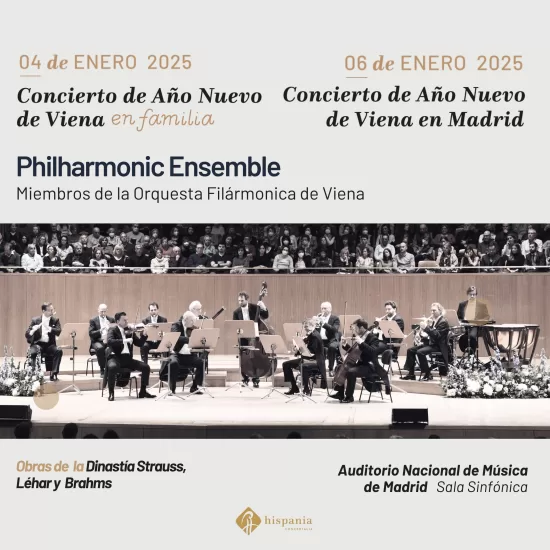 Philharmonic Ensemble, orquesta integrada por destacados músicos de la Orquesta Filarmónica de Viena, representa un testimonio de excelencia en la música vienesa, se enorgullece de dar la bienvenida al 2025 en el Auditorio Nacional de Madrid. por tercera vez y como ya es tradición, el prestigioso Concierto de Año Nuevo de Viena a la capital española, apenas unos días después de su mundialmente conocido concierto en la Musikverein, retransmitido por televisión a más de 90 países. La singularidad de estos conciertos reside en la meticulosa interpretación y selección de obras que conforman el programa, ofreciendo a la audiencia una experiencia musical única e inolvidable.