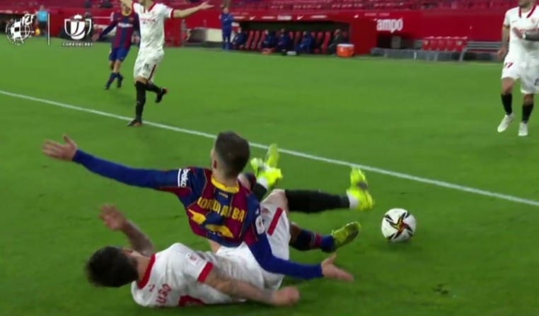 La cuenta oficial de Twitter del Fútbol Club Barcelona compartió un vídeo donde se puede observar una toma de la polémica jugada de Jordi Alba en el partido de semifinales de Copa del Rey celebrado el miércoles contra el Sevilla.