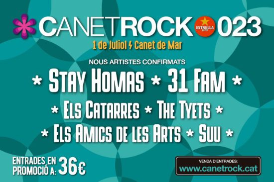 El festival Canet Rock ha anunciado a Stay Homas y 31 FAM como sus nuevas incorporaciones para el cartel de su novena edición, que se celebrará el 1 de julio de 2023 en Canet de Mar (Barcelona), ha informado la organización este lunes en un comunicado.