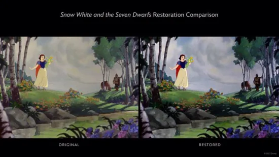 «La oportunidad de ayudar a restaurar Blancanieves fue un honor a la vez que un gran reto», declaró Goldberg. «Al ser la primera película de Walt Disney, Mike Giaimo y yo nos sentimos en deuda con la historia para mejorar al máximo su aspecto pero siendo lo más fieles posible a los colores originales. La paleta apagada y los delicados fondos de acuarela evocan los cuentos de hadas ilustrados que tanto amaba Walt. Además, el público sigue identificándose a día de hoy con la historia y los personajes. Espero que nuestro trabajo anime a futuras generaciones de artistas de la animación a apreciar el talento magistral y el enorme cuidado que hemos puesto en restaurar esta película histórica», agregó el jefe de animación de Walt Disney Studios.