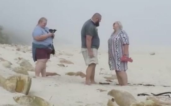 Un par de vídeos que circulan por WhatsApp dan muestra de la desternillante y accidentada pedida de matrimonio en una playa.