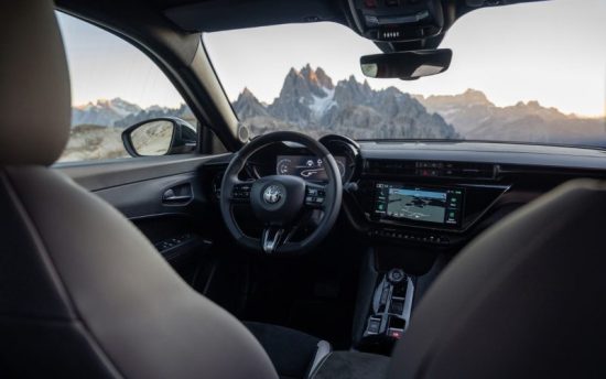 En el interior, la artesanía y la atención al detalle definen un ambiente sofisticado. Los asientos calefactados, con ajuste eléctrico, cuentan con una distintiva tapicería perforada de Alcantara con un inserto de respaldo de color claro e inserciones de «hielo» en los asientos delanteros. El mismo material cubre el tablero, el túnel central y los paneles de las puertas, mientras que el volante, que combina cuero y Alcantara con costuras contrastantes, proporciona la sensación táctil típica de la experiencia de conducción deportiva de Alfa Romeo. Las costuras luminosas y el logotipo del salpicadero, los pedales y la placa de protección de aluminio, y la iluminación ambiental contribuyen a crear un ambiente exclusivo.
