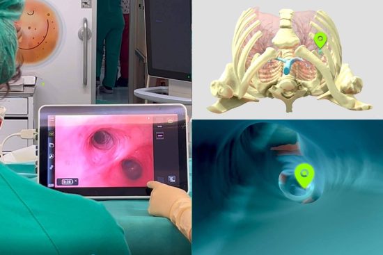 Por primera vez, no lo hizo solo: a su lado, la ingeniera clínica Celia del Peso Ley, de Rayo-seco Systems®, monitorizaba un modelo virtual 3D segmentado a partir de imágenes tomográficas del propio paciente. Desde una pantalla, ofrecía referencias espaciales, confirmaciones anatómicas y seguimiento en tiempo real del trayecto que el broncoscopio recorría.