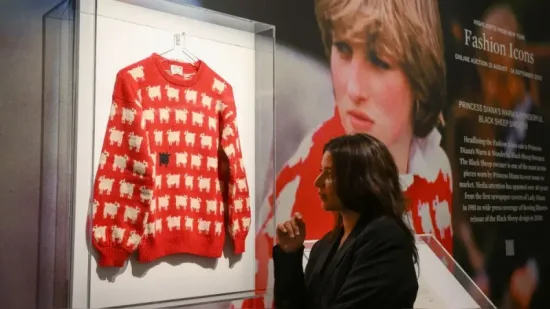 El emblemático suéter rojo con diseños de ovejas que llevó la princesa Diana en 1981, poco después de su compromiso con el entonces príncipe Carlos, fue adjudicado tras unos frenéticos minutos finales en 1,1 millones de dólares, anunció la casa de remates Sotheby’s que organizó la venta en línea.