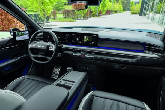 El EV9, presentado por primera vez en forma de prototipo en el Auto Show de Los Ángeles 2021, comparte mucho con el EV6, incluida su plataforma E-GMP, ahora ampliada para darle al nuevo SUV, una distancia entre ejes considerable de 3.100 mm de largo y una carrocería de aproximadamente de 5.100 mm de largo.