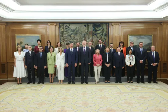 Una vez completado el proceso, los 22 ministros han saludado a Felipe VI y han posado junto a él y al presidente del Gobierno para una foto, la primera del nuevo Ejecutivo.