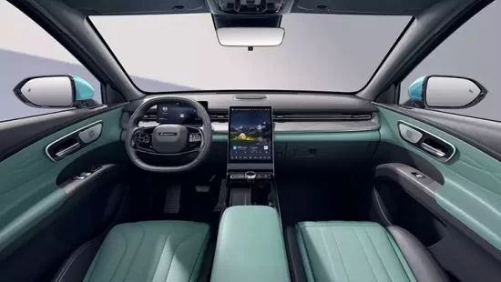 El diseño interior también tiene una fuerte conexión con la naturaleza. La gran pantalla vertical unida a la consola central está inspirada en las cascadas naturales, las tonalidades interiores reflejan colores naturales de bosques, desiertos y glaciares, y los materiales tienen una textura cálida y natural. La iluminación ambiental y los detalles inspirados en piedras pulidas y efectos de agua refuerzan la armonía entre naturaleza y tecnología.