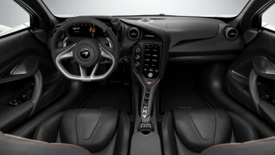 Cuando se equipa con todas las opciones de peso ligero disponibles, que incluyen nuevos asientos de fibra de carbono y llantas de aluminio forjado más ligeras, jamás instaladas en un McLaren de carretera, cuyo peso se puede reducir a tan solo 1.277 kg. El interior de este superdeportivo, ha modernizado con los últimos elementos de infoentretenimiento e interfaz de usuario, que se vieron por primera vez en el Artura, incluida una nueva pantalla de instrumentos estáticos con conmutadores de modo similares montados en sus bordes.