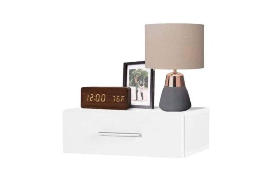 Las mesitas de noche flotantes son una excelente opción en el momento de decorar espacios pequeños, porque ocupan un lugar aéreo sin utilidad, lo que permite una sensación de amplitud en la estancia y una mejor limpieza. Son muy decorativas, ligeras y funcionales. Sus diseños minimalistas y modernos hablan de la personalidad y estilo del ocupante del dormitorio. Se pueden encontrar abiertas, solo decorativas o con cajones para aumentar la posibilidad de almacenamiento.