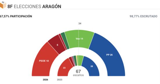 Uno de los grandes perdedores de la noche electoral es el PSOE, que desciende de los 23 escaños obtenidos en 2023 a los 18 de ahora, volviendo al suelo electoral que alcanzó Javier Lambán en 2015. La candidata, Pilar Alegría, ha reconocido que «no es un buen resultado», pero ha avanzado que el partido trabaja «desde ya» en una oposición «seria y responsable».