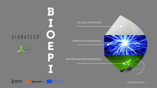 La empresa Airnatech coordina el proyecto “Tejidos filtrantes biodegradables para EPIs de alta eficacia» (BIOEPI), en colaboración con ENCAPSULAE y que cuenta también con la participación de los organismos de investigación AITEX y CSIC, con el objetivo de desarrollar un tejido filtrante de nueva generación.