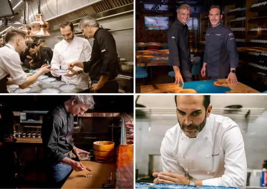 Dos chefs, dos cocinas delicadas, innovadoras y totalmente diferentes para deleitar paladares y perdurar en la memoria. El menú propuesto recoge la esencia de los fogones de ambos chefs, un recorrido donde se ahonda en el sabor y se apuesta por el ensamblaje maestro, repleto de contrastes, pero equilibrado. Un delicioso encuentro entre los chefs, una cocina de origen y otra viajera. Un menú con despliegue de técnica y cuidadas elaboraciones para el disfrute del comensal. Una deliciosa ocasión para celebrar la gastronomía y el tercer año de quintoelemento.
