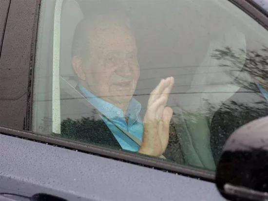 Recibido una vez más a pie de pista en el aeropuerto santiagués por su íntimo amigo Pedro Campos, el monarca ponía rumbo a la residencia del armador en Sanxenxo, a donde llegaba a media tarde saludando con una sonrisa pese a la intensa lluvia que le ha recibido en su inesperado regreso a nuestro país coindiciendo con la entrega de los Premios Princesa de Girona.