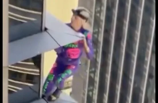 Sin arnés ni cuerdas, el francés escaló tranquilamente el edificio de 47 plantas de GT Capital, considerado el décimo edificio más alto de Filipinas, y luego descendió a la acera, donde fue arrestado por la policía.