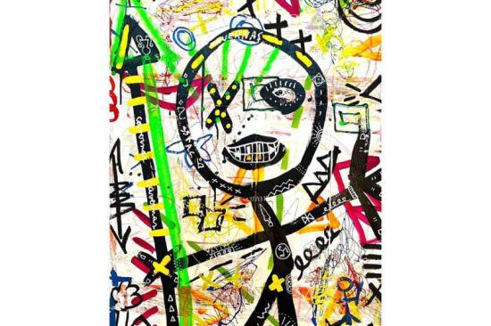 Sus pinturas también incluyen mensajes escritos con pinceles, los cuales se funden en la inmensidad de figuras de seres mitológicos y antropomorfos que forman parte de la cosmogonía y tradición espiritual de culturas milenarias. Estos textos hacen referencia a problemáticas sociales actuales, construyendo una narrativa que reconoce que la realidad universal también está ligada a la historia social contemporánea.