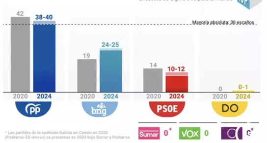 Con el 93% escrutado, el PPdeG mantiene la mayoría absoluta en Galicia, aunque pierde dos diputados respecto a 2020 y se queda en 40. Mientras, el BNG sube seis escaños y alcanza los 25. Por su parte, el PSdeG se desploma, cosecha los peores resultados de su historia y se queda en solo nueve. Por primera vez, Democracia Ourensana tendrá representación en la Cámara gallega al entrar con un acta.