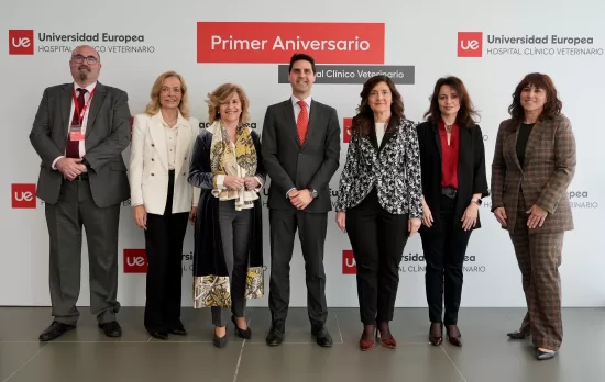 El Hospital Clínico Veterinario de la Universidad Europea ha celebrado su primer aniversario como referente de la unión entre educación e industria. Al acto, presidido por el consejero de Educación, Ciencia y Universidades de la Comunidad de Madrid y la presidenta y CEO de la Universidad Europea, Otilia de la Fuente, han asistido también la rectora de la UEM, Elena Gazapo; la viceconsejera de Universidades, Investigación y Ciencia, Ana Ramírez de Molina; los alcaldes de Villaviciosa de Odón y Brunete; y el presidente del Colegio de Veterinarios de Madrid; entre otras personalidades.