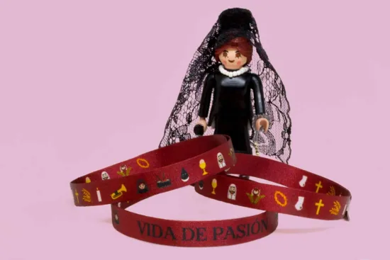 Uno de los artículos más destacados son las pulseras personalizadas hechas en tejido de poliéster e impresión de fotografía de alta calidad. El modelo «al brazo al hombro» representa el paso de Cristo en la iglesia, catedral y la parroquia durante la Semana Santa. Mientras que el modelo «al cielo con ella» es una representación directa de la Virgen María.