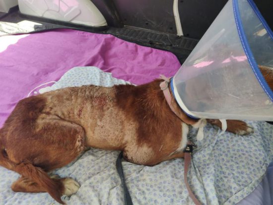 Ante la gravedad del animal decidieron contactar con Galgos del Sur, que se hizo cargo del perro, ingresándolo una vez lo trasladaron a Córdoba en el hospital veterinario de dicha ciudad.