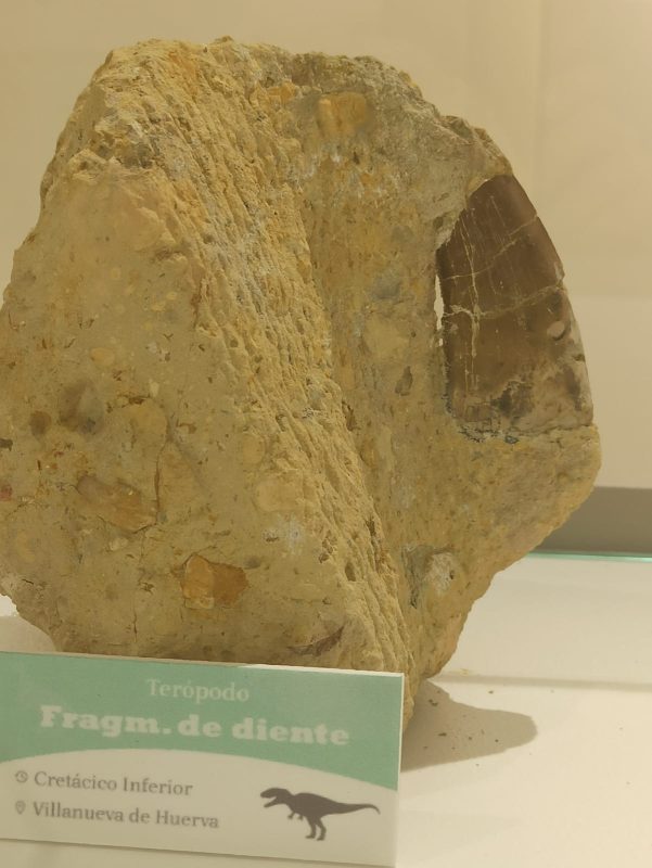 Este diente de dinosaurio terópodo, es el más grande y mejor conservado de la provincia de Zaragoza, y se encuentra expuesto en el Centro de Interpretación de Villanueva de Huerva, para cuya visita es imprescindible reserva previa a través de su página web ‘dinosauriosdezaragoza.com’.
