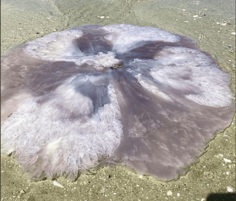 WOW! One of the largest jellyfish I’ve ever seen in Southwest Florida. Nearly 4 feet wide along Vanderbilt Beach on Saturday! Credit: @WINKNews viewer Anatoli Smirnov pic.twitter.com/hvQQWOYICM