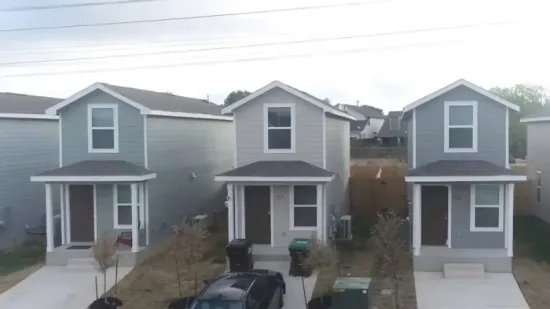 La mencionadas viviendas de Texas pueden medir entre 32 y 60 metros cuadrados. Los códigos en este estado piden que la mayoría de los terrenos unifamiliares tengan un mínimo de metros cuadrados. Sin embargo, este barrio está fuera de la ciudad, donde aún no hay regulaciones.