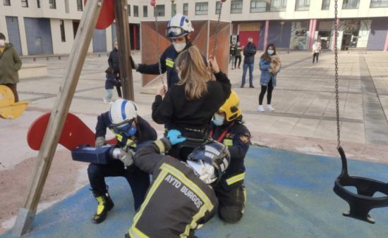 Una joven de 14 años tuvo que ser excarcelada por los Bomberos de Burgos tras quedarse encajada en un columpio de una zona de juegos de la plaza Rocamador de Burgos.