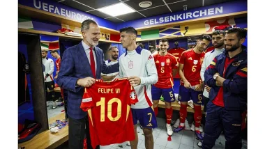 El rey Felipe VI se mete en el vestuario para felicitar a la selección