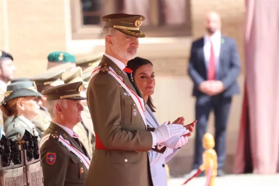 El Rey Felipe VI ha vuelto a jurar bandera este sábado, 4 de mayo, 40 años después de su ingreso en la Academia General Militar (AGM) de Zaragoza. En esta ocasión, la Princesa de Asturias, Leonor de Borbón, ha sido testigo como dama cadete.