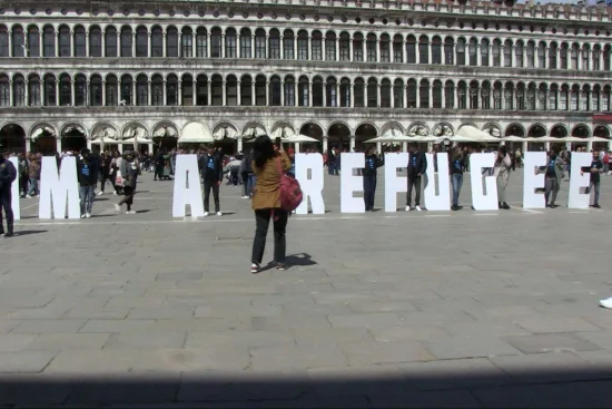 Así, “Journey of Labels” intervino diversos espacios de Venecia, desde íntimos entornos privados hasta vibrantes espacios públicos. La primera actividad se denominó “Cuando el Agua es más Segura que la Tierra” y se llevó a cabo el miércoles 17 de abril en las cercanías del Ponte de Rialto, con la participación de miembros de la prestigiosa organización Refugees Welcome Italy, quienes recitaron poesías al aire libre y contaron su experiencia migratoria personal.