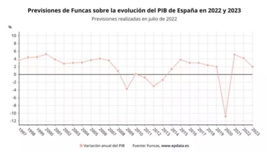 En consecuencia, la economía española registrará una fuerte desaceleración en 2023, con un crecimiento del PIB del 2%, 1,3 puntos menos que en la anterior previsión. El director de Funcas, Carlos Ocaña, ha insistido en que estas previsiones son muy sensibles a la evolución de la inflación y los tipos de interés; una inflación más elevada o un ajuste de los tipos de interés más rápido resultarían en un menor crecimiento, «un escenario más adverso que no es descartable».