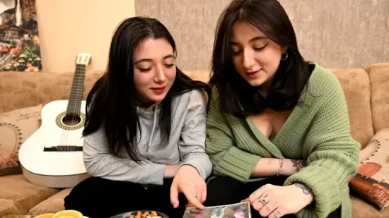 Las hermanas gemelas georgianas Anna Panchulidze, estudiante universitaria de inglés, y Elene Deisadze, estudiante de