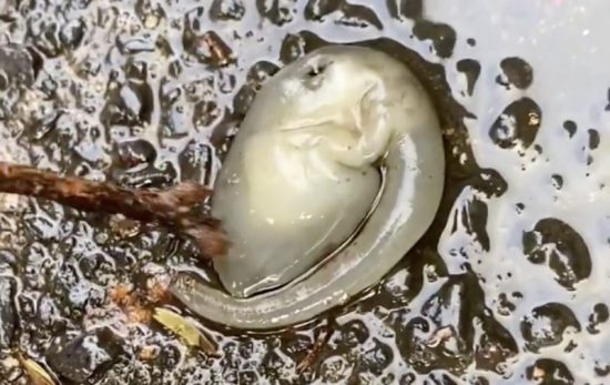El hombre compartió las curiosas imágenes en Instagram donde no tardaron en viralizarse. En el clip aparece una criatura blanca, viscosa, de ojos diminutos,