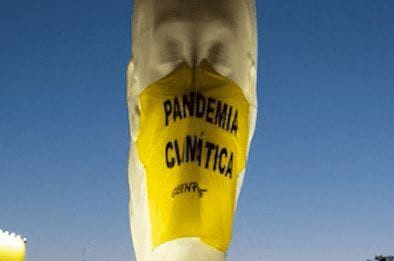 Activistas de Greenpeace han colocado este martes una mascarilla gigante en una escultura de la plaza de Colón de Madrid en la que se puede leer ‘Pandemia Climática’. Al lado de la mascarilla, de cuatro por cinco metros, la organización ha colocado una pantarta con el mensaje ‘La inacción nos ahoga’. La organización ecologista insiste, con esta acción, en la urgencia de prevenir «los peores efectos de la emergencia climática que afronta el planeta».