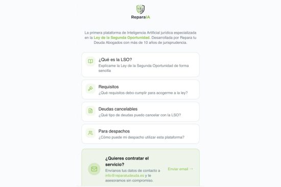 Grupo Repara, a través de su división especializada en insolvencias bancarias, Repara tu Deuda Abogados, anuncia el lanzamiento de REPARA IA, una plataforma revolucionaria que redefine el acceso, la interpretación y la aplicación práctica de la Ley de la Segunda Oportunidad en España.