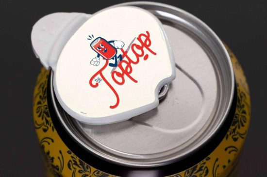 La tapa para latas de THE TOPTOP ofrece la posibilidad de hacer un regalo original y al mismo tiempo anunciar una empresa o una marca personal.
