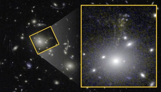 En primer lugar, los investigadores seleccionaron una galaxia cuyo brillo está amplificado por el efecto de lente gravitacional ejercido por un cúmulo de galaxias intermedio. Posteriormente, buscaron datos de observaciones en infrarrojo de misiones espaciales y los combinaron con las imágenes del telescopio espacial Hubble.
