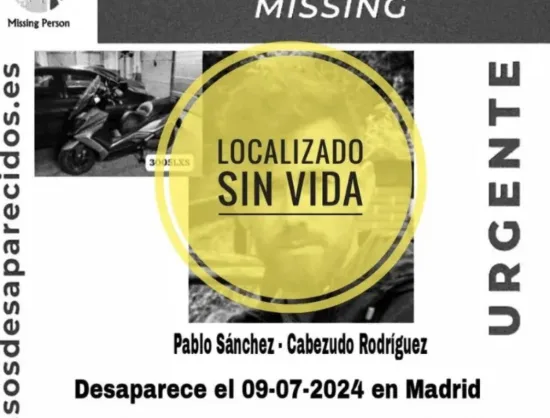 Se trata de Pablo Sánchez-Cabezudo Rodríguez, policía nacional destinado en la Brigada Local de la Policía Judicial de Parla. La última vez que se le vio salía de su casa situada en la plaza de la Juventud de Humanes el pasado martes sobre las 17.30 horas con su motocicleta, una Kymco Sperdink de color gris con matrícula número 3005 LXS.