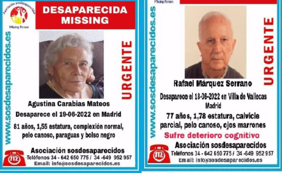 Por otro lado, se buscaba desde el sábado a Rafael Martínez Serrano, de 77 años y vecino del distrito de Villa de Vallecas. Medía 1,78 metros, tenía calvicie parcial, pelo canoso y ojos marrones. Sufría deterioro cognitivo y necesita medicación, por lo que sus amigos y parientes organizaron batidas para encontrarle.