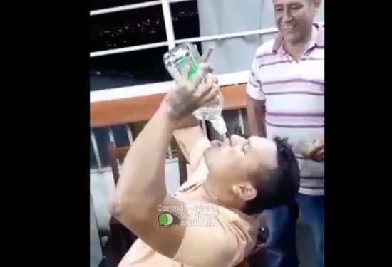 El clip fue compartido por la cuenta de Twitter @DenunciasAnto2. En este se observa al hombre sentado en una silla mientras consume la bebida y se escucha la algarabía de las personas que se encuentran alrededor.