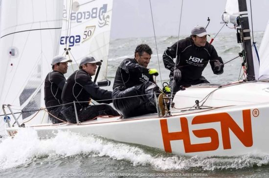 Ayer jueves empezaban las regatas oficiales del Campeonato de Europa de J70 de la categoría Corinthians en las aguas de Cascais, Portugal. Tras una primera jornada del día anterior, en la que solo se disputó una regata de entrenamiento con tres salidas, el campeonato daba ayer el pistoletazo de salida con tres espectaculares mangas. Las condiciones de navegación fueron muy duras con vientos que oscilaron entre los 17 y los 24 nudos con una dirección muy estable del 155º.