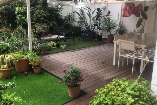 Otra excelente manera de convertir instantáneamente un área de terraza con tarima exterior en algo especial es llevar el diseño de la terraza de su jardín a otro nivel… ¡literalmente!