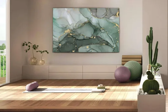 Otro factor relevante es pensar en la adecuada disposición de los cuadros en la pared, ya sea colocar un solo cuadro grande o una composición con varios cuadros pequeños. Además, es importante aprovechar al máximo cada espacio. Por ejemplo, en techos altos, es recomendable optar por cuadros grandes para reducir la sensación de amplitud.