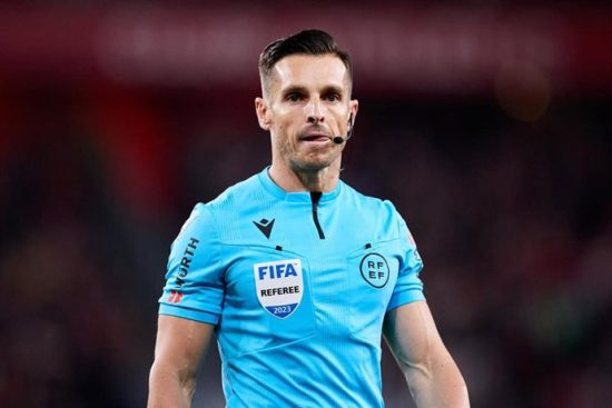 En la pancarta, que apareció en las inmediaciones del RCDE Stadium, figuraba el rostro de este árbitro de Primera División, con un punto de mira sobre su frente bajo la leyenda «SE BUSCA», así como su nombre modificado de forma ofensiva.