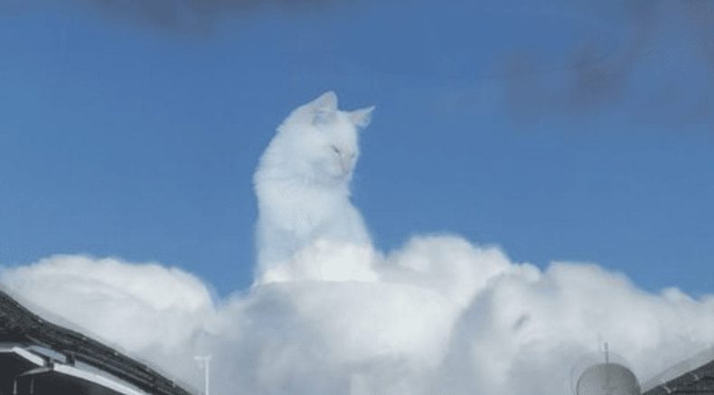 En la imagen compartida puede apreciarse el reflejo de la mascota en la ventana. Bajo el minino, unas nubes de color blanco parecen suspender al animal en el aire de forma angelical fundiéndose con su cuerpo.