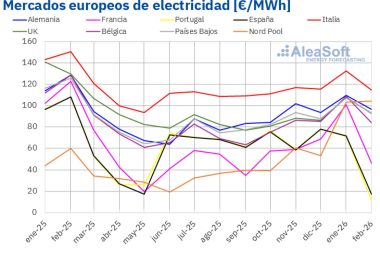 AleaSoft; Gas y CO2 a la baja y renovable récord impulsaron descensos en mercados europeos en febrero