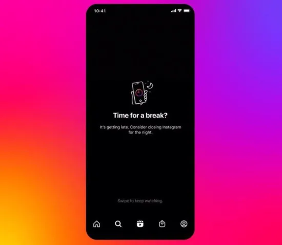 Esta notificación aparecerá por la noche, a pantalla completa y con fondo negro, si la aplicación detecta que el usuario pasa más de diez minutos en Reels o en los mensajes privados. En ella se le indicará que se está «haciendo tarde» y se le pedirá que considere cerrar la aplicación.