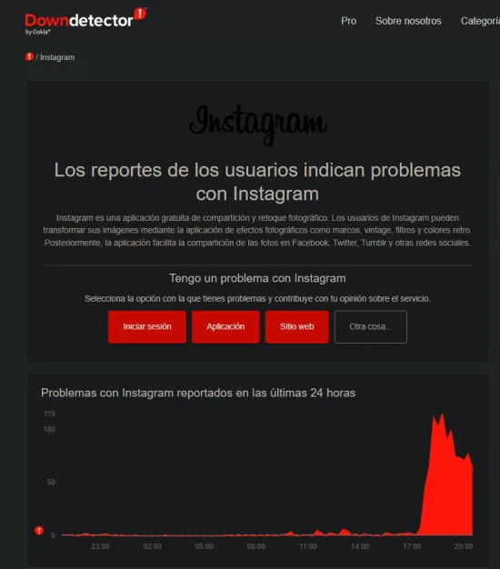 Sin embargo, en redes sociales empezaron a publicarse varios reportes de problemas para acceder a Instagram de manera repentina, algo que también fue comentado por la página Downdetector.