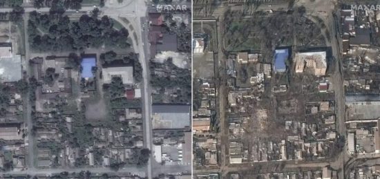 Estas imágenes de satélite tomadas por la empresa Maxar Technologies el miércoles 9 de marzo de 2022 muestran cómo la guerra ha destruido la ciudad de Mariúpol. En las fotografías se ve profundos daños en edificios civiles, incluyendo casas residenciales, supermercados y otros edificios.