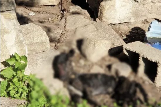 A continuación, y tras examinar la finca, hallaron el cadáver de un perro adulto que se encontraba atado al tronco de un árbol, con una cadena de hierro. El animal presentaba signos de llevar varios días muerto en el lugar.